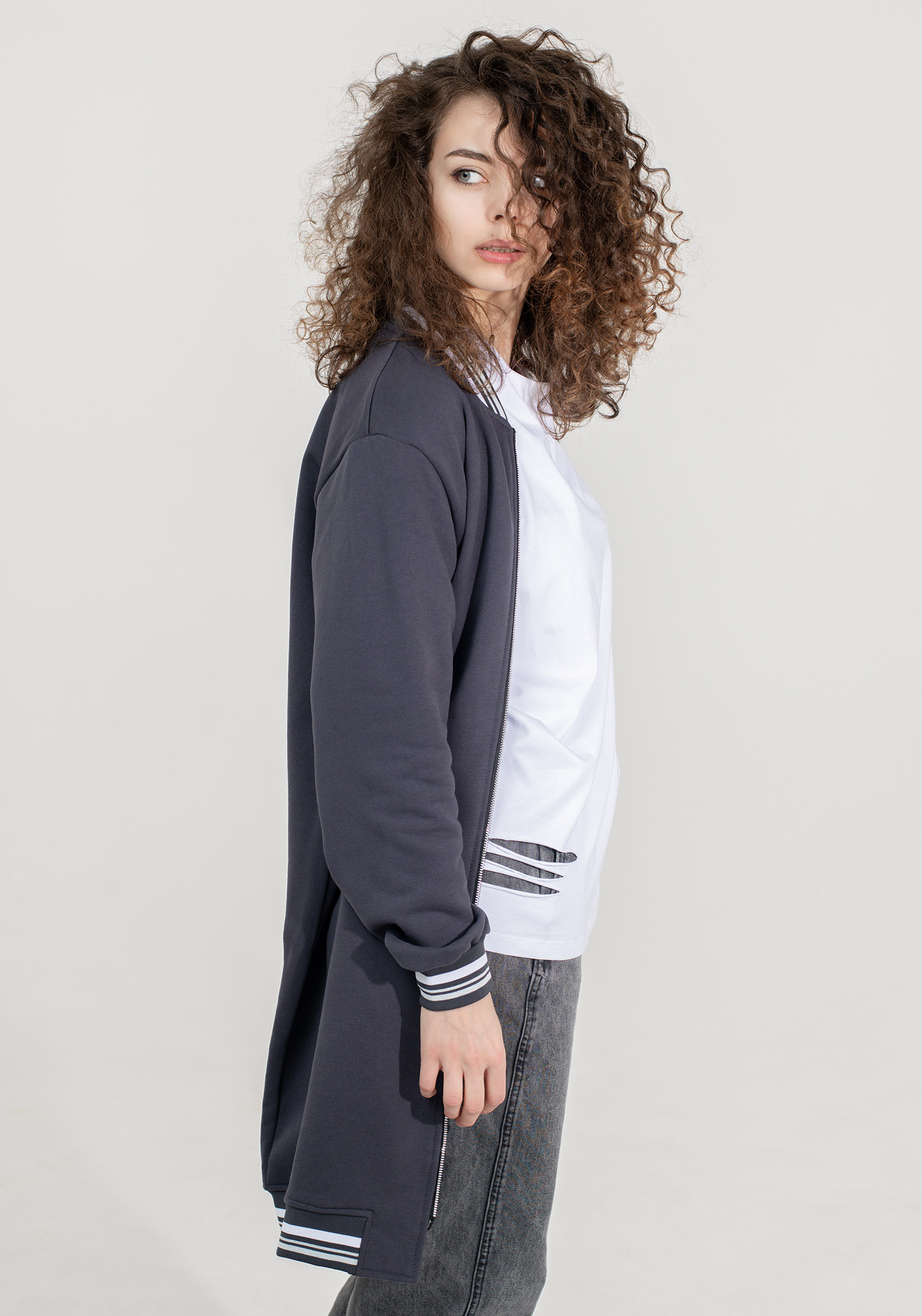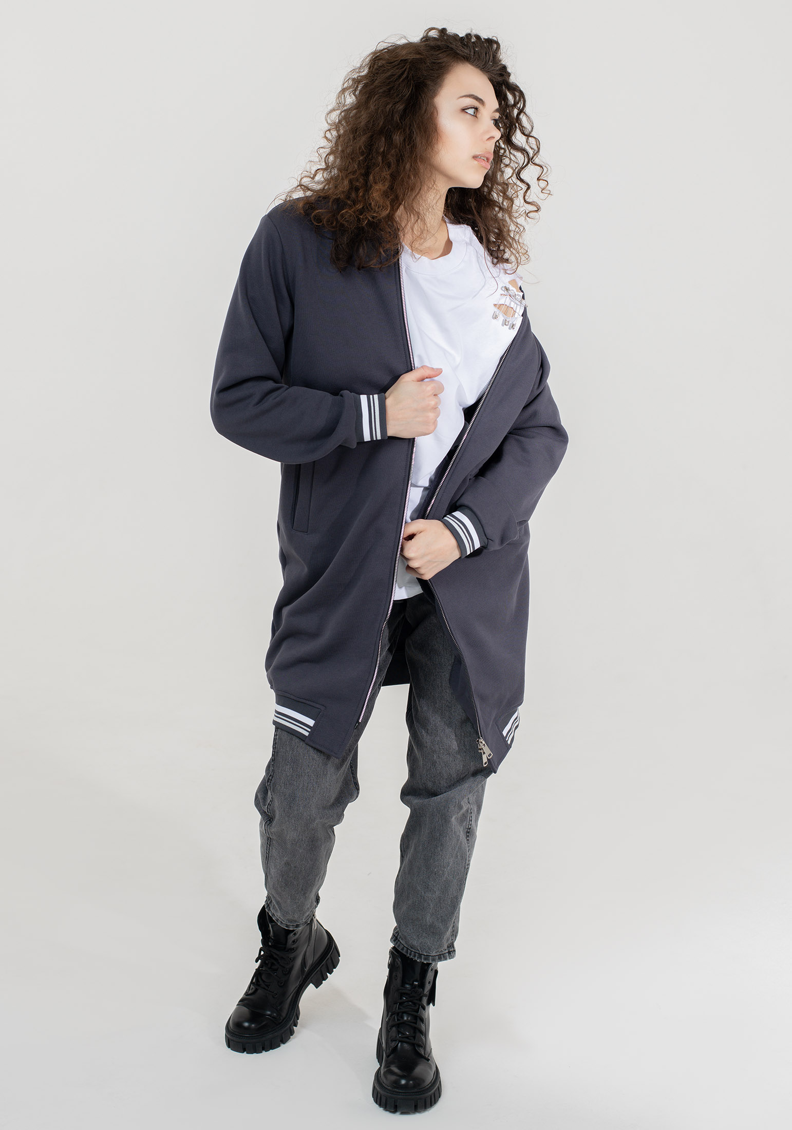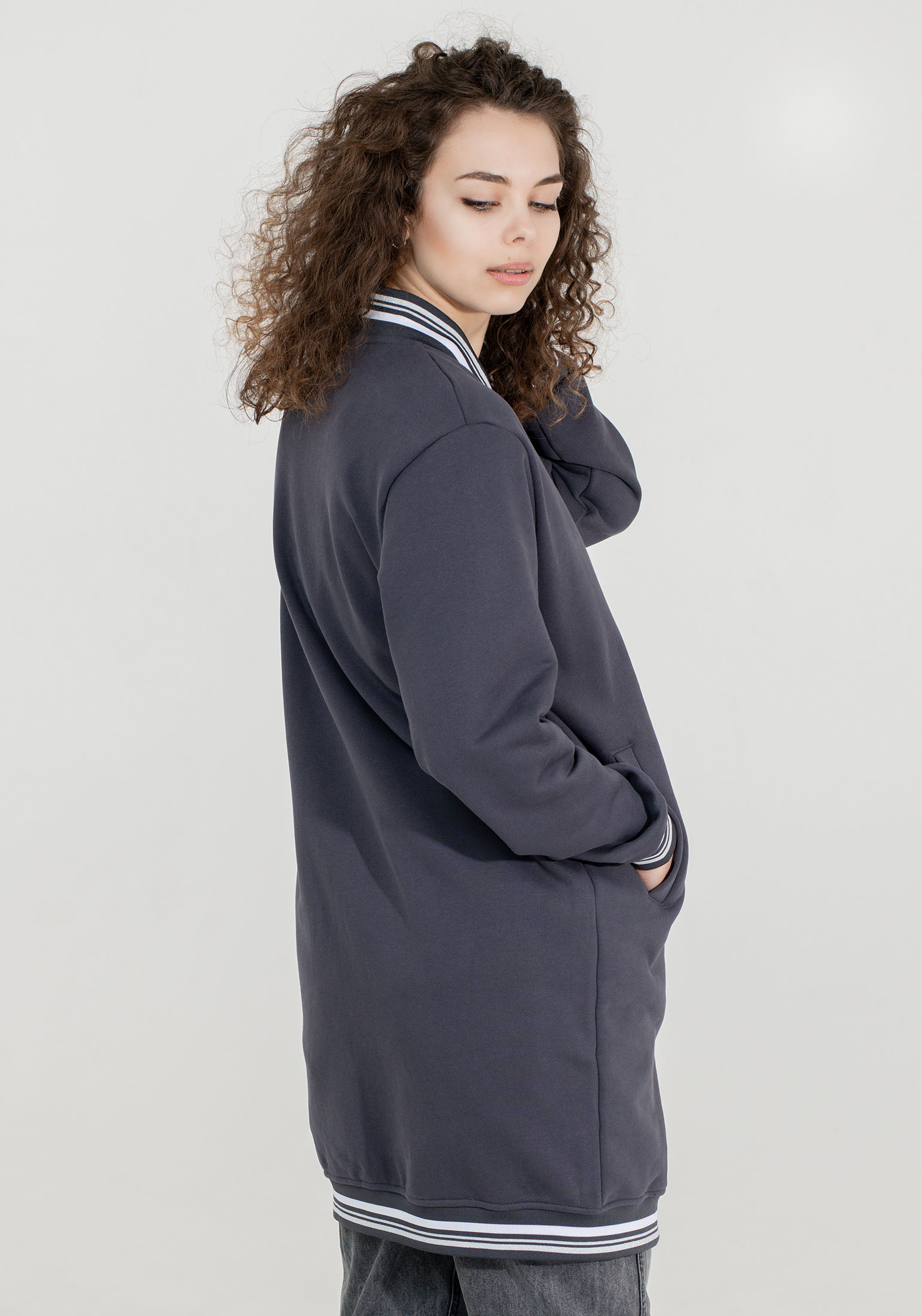 Оригинальный, стильный женский удлинённый бомбер на двухразъёмной молнии, выполнен из высококачественного турецкого футера 3-х нитки без начёса - тренд уличной моды street style! Модель прямого кроя, с втачными рукавами и вместительными карманами листочками. Эластичная тесьма по низу изделия и рукавам. На прогулку, в школу или университет, на встречу с друзьями - трикотажный бомбер станет Вашей незаменимой вещью в гардеробе, актуален в любой сезон и погоду. Отлично сочетается с брюками карго, джоггерами, джинсами, с кроп-топом, также образов «спорт-шик» с платьями и юбками мини и миди - Вы будете всегда выглядеть стильно! Наша одежда свободного кроя - идеальное решение на каждый день. Такой крой даёт ощущение комфорта, свободы и раскованности. Наша актуальная модель будет прекрасным подарком на новый год, к 8 марта, день святого Валентина, на день рождение, на день матери. Сделано в России с любовью к Вам! Гладить с изнанки. Стирка при t не более 30С. Деликатный отжим, отбеливание запрещено. При соблюдении наших несложных правил ухода одежда DS будет радовать Вас долгое время!